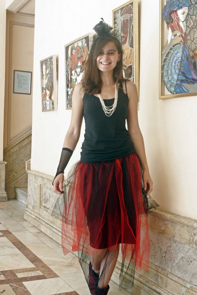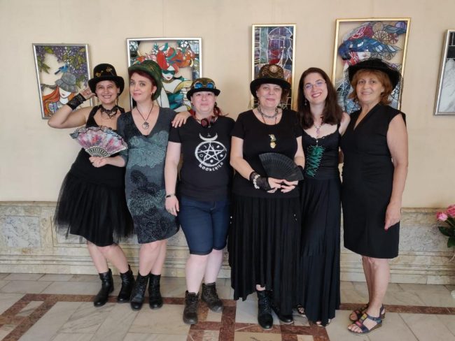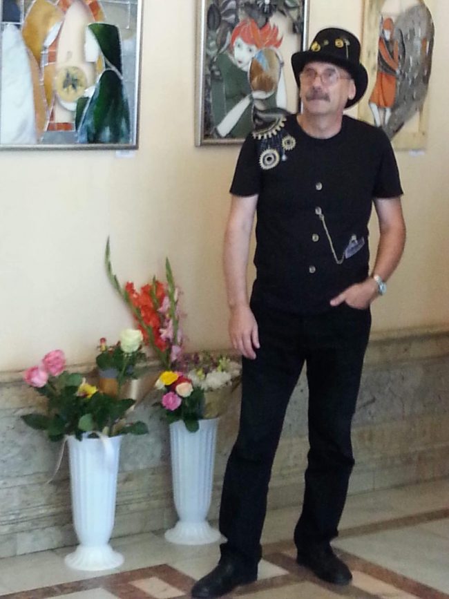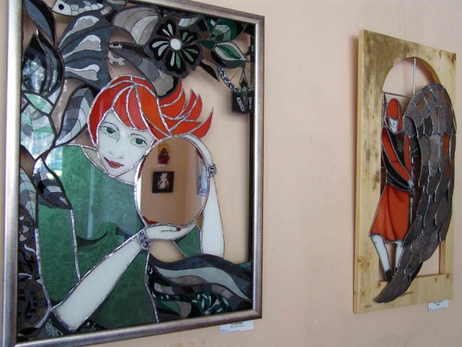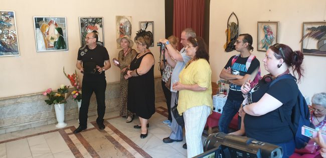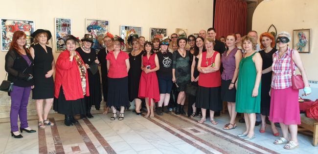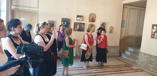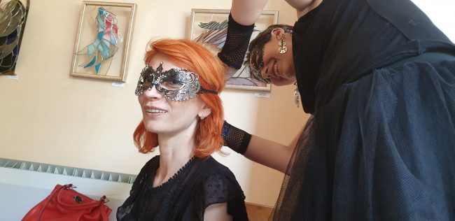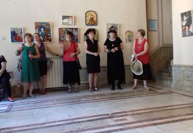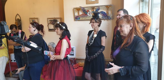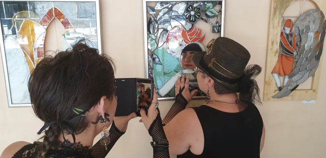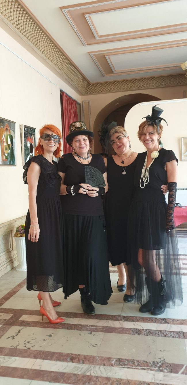 Expozitia personala “Femei si ingeri”,expozitie de vitralii altfel, e gazduita de Galeria Foaier a Cercului Militar National in perioada 25 iunie- 08 iulie 2019. Vernisajul din data de 26 iunie a cuprins o scurta prezentare a expozitiei si un minirecital al actritei Doina Ghitescu. Participantii au fost rugati sa se imbrace astfel incat sa sugereze moda Ghotic- Steam punk culorile acceptate fiind negru, rosu sau violet cu accesoriile de rigoare. Tablourile cu teme delicate, in culori vii au contrastat placut cu imbracamintea preponderent neagra. A fost un vernisaj vesel vizionarea tablourilor amestecandu-se cu placerea provocata de minibalul mascat.